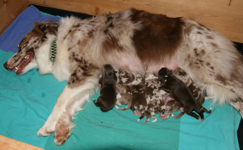 Am 22. Juli 2018 erblickten 7 gesunde Welpen das Licht der Welt - Brix und Linus sind Eltern von 4 Rüden und 3 Hündinnen geworden.