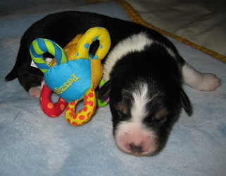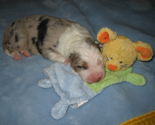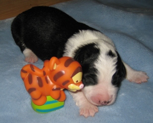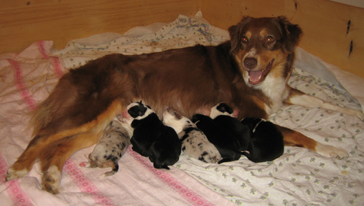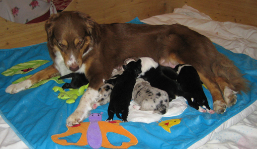 Am 6. September 2009 erblickten 7 Welpen das Licht der Welt - Destiny und Finn sind Eltern von 4 Rüden (3 black tri w/co und 1 blue merle w/co) und 3 Hündinnen (2 black tri w/co und 1 blue merle w/co) geworden!